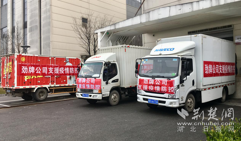 2月17日上午,5辆载着2万副“肺炎1号”治疗方中药配方颗粒的货车相继从劲牌公司出发,分别送往省防控指挥部指定的黄石、鄂州、黄冈、咸宁、荆州和恩施的50个新冠肺炎治疗点。